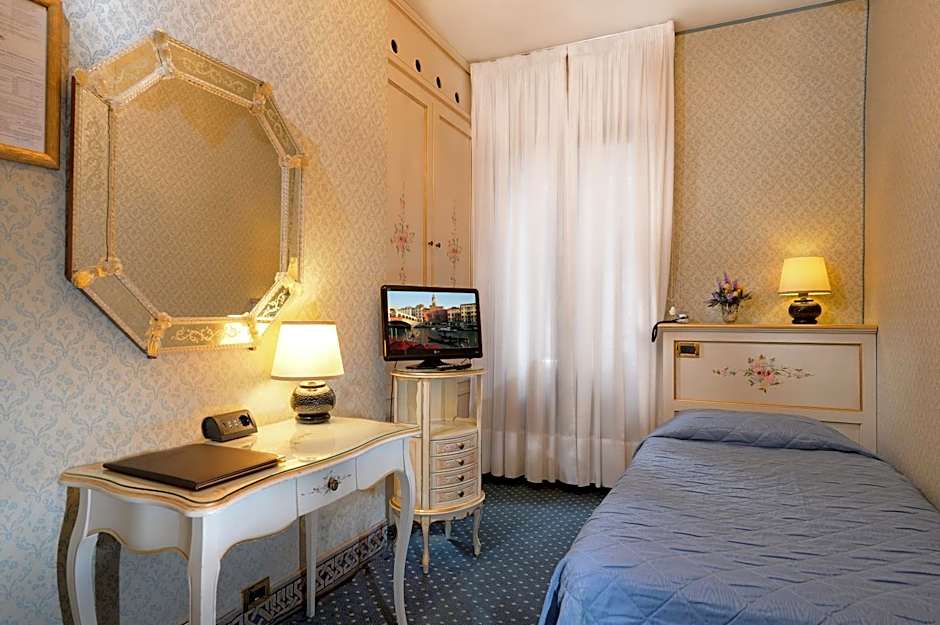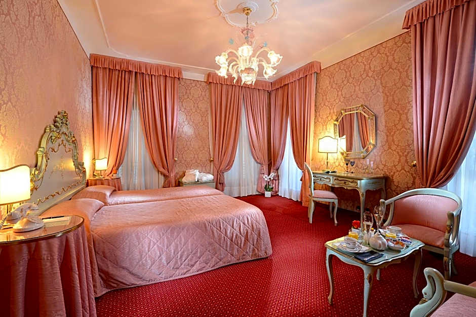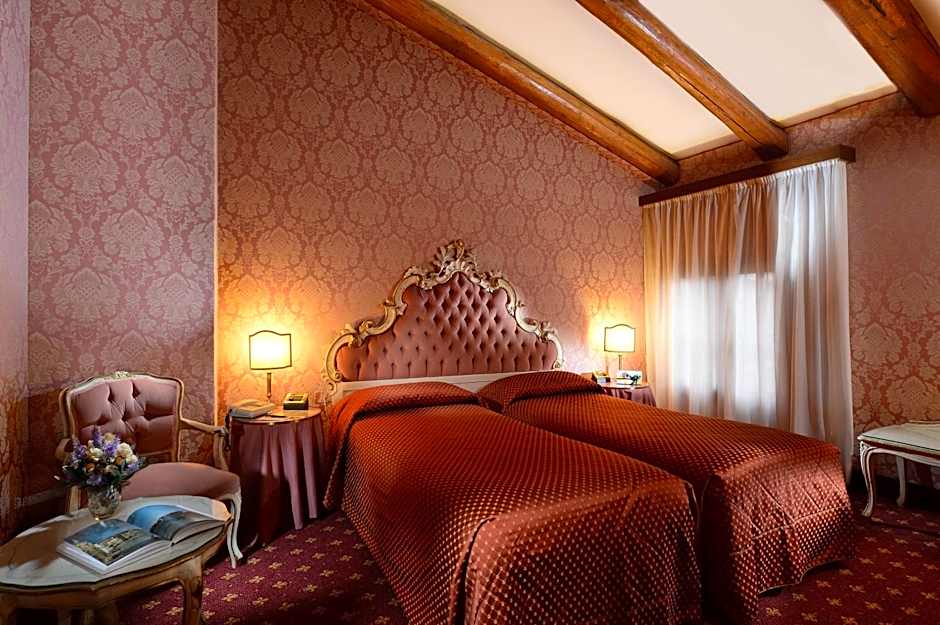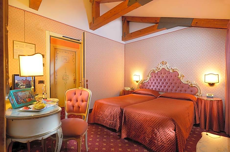 Traditionally furnished, room with attached bathroom. Offers bathrobes and slippers, and views over the Grand Canal.
